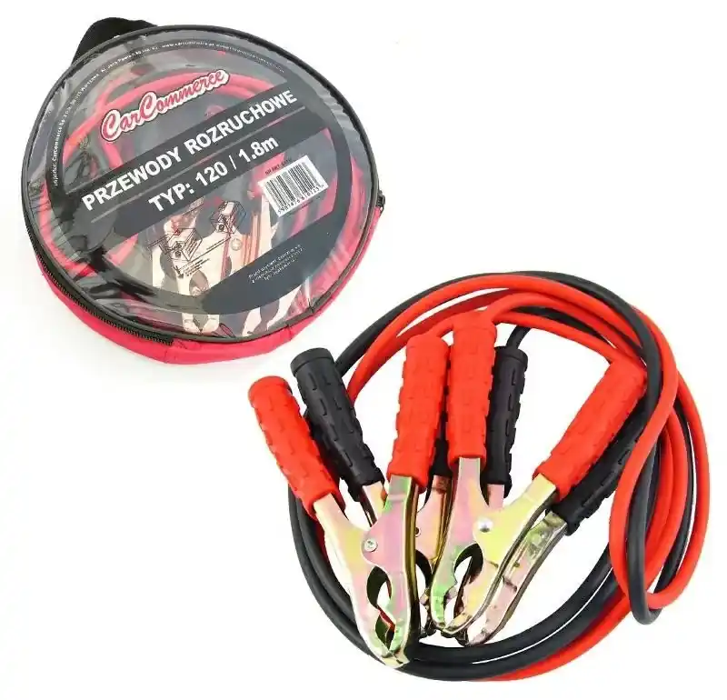 Przewody rozruchowe o natężeniu prądu wyjściowego 120A i długości kabla 1,8m. Przydatne akcesorium, które pomoże nam w razie rozładowanego akumulatora uruchomić pojazd. Przewody wysyłane są w praktycznej torbie razem z intrukcją obsługi. Przewody rozruchowe w zależności od typu przeznaczone są do uruchamiania silników z zapłonem iskrowym o odpowiednich pojemnościach. Typ 120 do 1000 cm3.