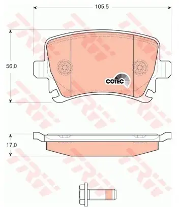 ze stykiem zużycia Ilość wskaźników zużycia okładzin [na oś]: 4 Wysokość [mm]: 57,9 Szerokość [mm]: 148,7 Grubość [mm]: 17,7 balení: