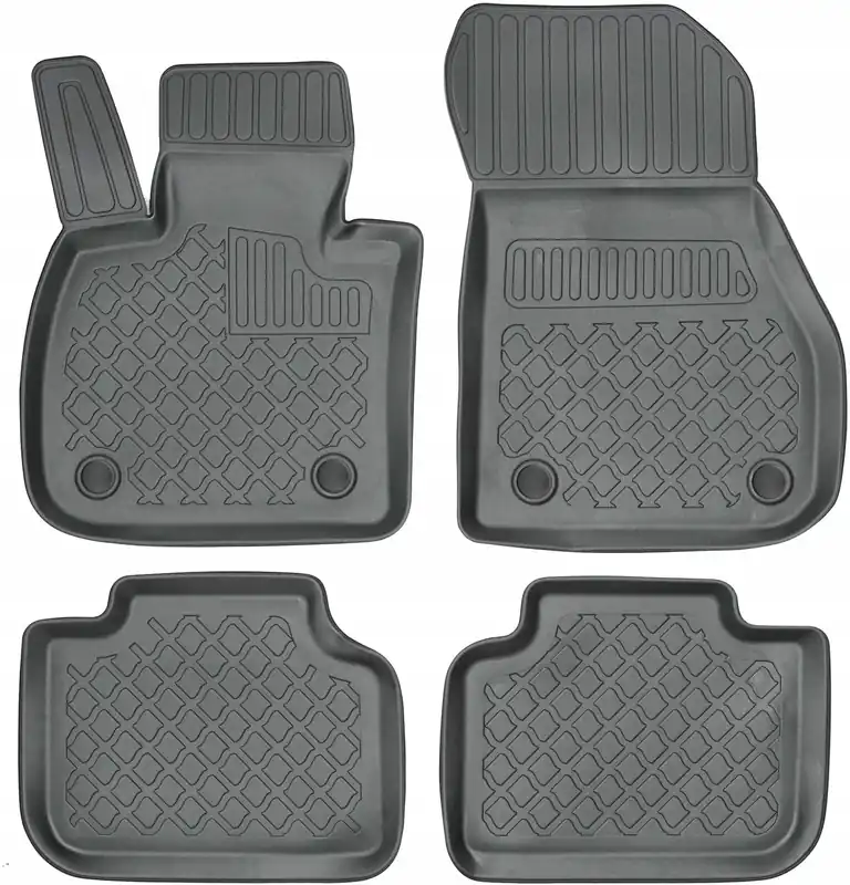 Oferowane dywaniki zostały precyzyjnie zaprojektowane do kształtu płyty podłogowej biorąc pod uwagę nie tylko markę / model samochodu, ale także rocznik oraz wersję nadwozia, dzięki czemu pasują idealnie. Dywaniki wytwarzane są z najwyższej jakości, trwałego i wzmocnionego tworzywa sztucznego, niezawierającego substancji szkodliwych dla zdrowia, co zapewnia bezpieczeństwo użytkowania. Wysoki kołnierz(brzeg) ochronny dookoła dywaników oraz stabilność kształtu skutecznie zatrzymuje wodę i brud, zabezpieczając oryginalną tapicerkę samochodową przed zabrudzeniem. Bezpieczne w użytkowaniu, dzięki praktycznemu i łatwemu w użyciu systemowi mocowania do podłogi samochodu. System mocowania dostosowany jest do marki / modelu samochodu i zabezpiecza dywanik przed przesuwaniem podczas jazdy. Matowe wykończenie oraz dopracowany wzór na powierzchni zapewniają estetyczny wygląd dywaników w samochodzie.