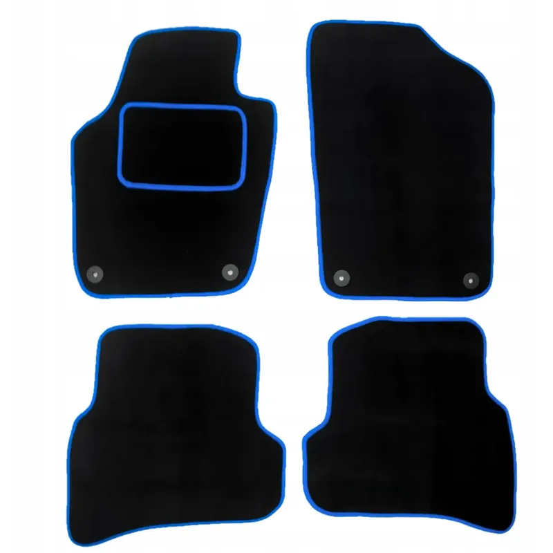 Brzegi dywaników zostały obszyte czarną lamówką ze skóry syntetycznej. Odcień wykładziny, lamówka i nić za pomocą której została przeszyta zostały dobrane w taki sposób, aby komponowały się w jedną, spójną całość.