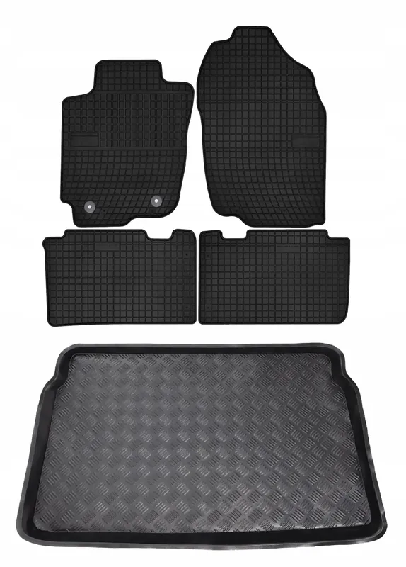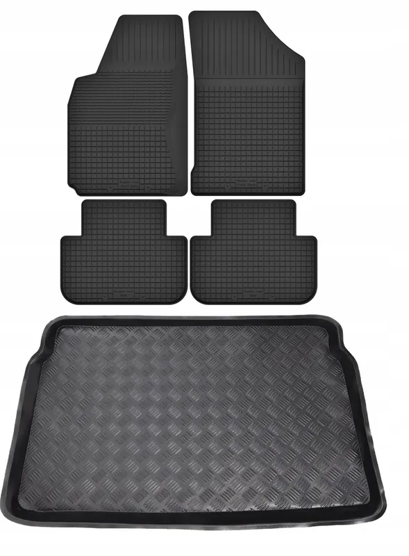 Ten zestaw to połączenie bardzo atrakcyjnej ceny, oraz dużej wytrzymałości produktu. Dywaniki wykonane są gumy, natomiast mata do bagażnika z tworzywa sztucznego LDPE (elastyczny plastik, można zginać i zwijać w rulon)