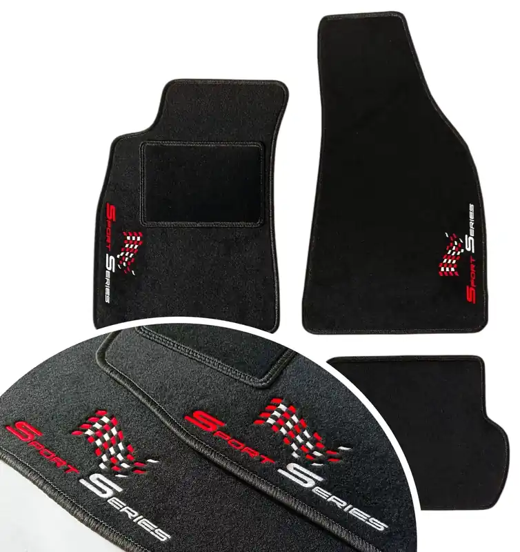 Pragniemy zaoferować Państwu komplet dywaników (4 sztuki) w kolorze czarnym, wykończonych obszyciem z przędzy polipropylenowej w kolorze srebrnym (błyszczący popiel). Wykładzina, z której wykonane są dywaniki, jest to produkt zaprojektowany z myślą specjalnie o przeznaczeniu go do produkcj dywaników samochodowych.