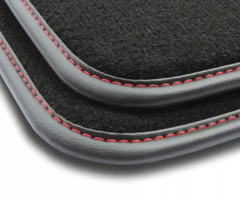 Obszycie: Czarna lamówka skórzana ( błyszcząca ) obszyta czerwoną nitką