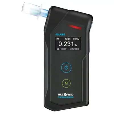 Ponadto dzięki liniowej charakterystyce i dużej selektywności czujnik reaguje wyłącznie na obecność alkoholu etylowego w wydychanym powietrzu. Na frontowej części urządzenia znajduje się duży czytelny wyświetlacz z dwukolorowym podświetleniem, z którego możemy odczytać wszystkie niezbędne informacje dotyczące badanej próbki powietrza. W przypadku pomiaru, którego wynik będzie wyższy niż 0,19 promila urządzenie automatycznie uruchomi dualny alarm (świetlny i dźwiękowy) informując o przekroczeniu przez badaną osobę niedozwolonego wg polskiego prawa poziomu alkoholu w wydychanym powietrzu.