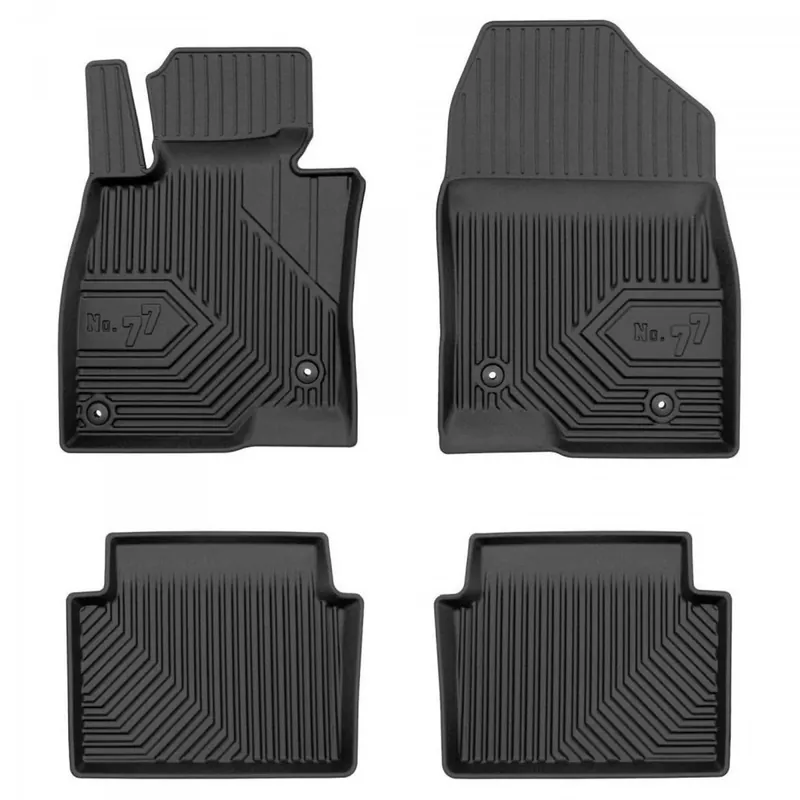 Oryginalne, wysokiej jakości dywaniki samochodowe firmy FROGUM z nowej serii No. 77. Wykonane z elastomeru plastycznego (TPE) w kolorze czarnym. Dzięki zastosowaniu najwyższej jakości tworzywa charakteryzują się niespotykaną odpornością na wycieranie. Wysoki, trójwymiarowy brzeg ochronny zabezpiecza podłogę samochodu, powierzchnie boczną tapicerki oraz podstopnicę łącznie z wykładziną pod pedałami. Zalety dywaników z serii No.