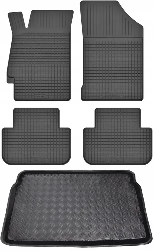 Ten zestaw to połączenie bardzo atrakcyjnej ceny, oraz dużej wytrzymałości produktu. Dywaniki wykonane są gumy, natomiast mata do bagażnika z tworzywa sztucznego LDPE (elastyczny plastik, można zginać i zwijać w rulon)