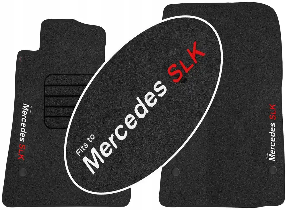Na przednich dywanikach wykonywany jest napis informacyjny metodą haftowania bezpośredniego na dywanikach o treści ” Mercedes SLK ” . Dzięki nowoczesnemu zapleczu produkcyjnemu oraz korzystaniem z wysokiej jakości materiałów i nici, haft na dywanikach jest wytrzymały i estetyczny co w dodatkowy sposób wpływa korzystnie na prezentację dywaników we wnętrzu samochodu. Treść napisu na dywanikach jest zgodna ze zdjęciem głównym (w zależności jest to model lub marka samochodu) a nad tym napisem delikatną czcionką naniesiony jest napis „Fits to”, który informuje o przeznaczeniu dywaników.