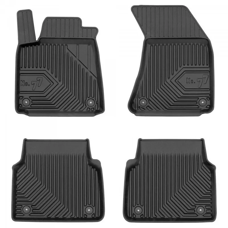 Oryginalne, wysokiej jakości dywaniki samochodowe firmy FROGUM z nowej serii No. 77. Wykonane z elastomeru plastycznego (TPE) w kolorze czarnym. Dzięki zastosowaniu najwyższej jakości tworzywa charakteryzują się niespotykaną odpornością na wycieranie. Wysoki, trójwymiarowy brzeg ochronny zabezpiecza podłogę samochodu, powierzchnie boczną tapicerki oraz podstopnicę łącznie z wykładziną pod pedałami. Zalety dywaników z serii No.