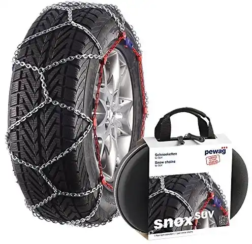 Łańcuchy śniegowe SXV 580 SNOX SUV firmy Pewag zapewniają doskonałą przyczepność na śniegu i lodzie. Świetnie nadają się do samochodów typu SUV. Bez pierścieni, bez haków, bez napinania: mocowanie łańcuchów jest prostsze niż kiedykolwiek. Jak to możliwe$70 Sekretem jest unikalna technologia napinacza snox-box firmy Pewag.