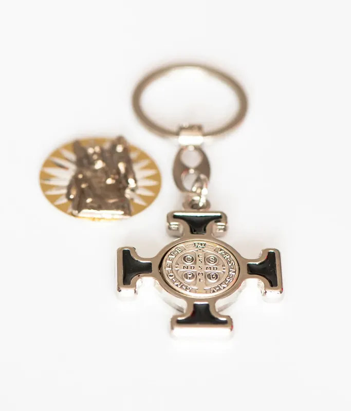 - ZESTAW KATOLIKA DO SAMOCHODU 2 W 1/BRELOK św.Benedykt/NAKLEJKA