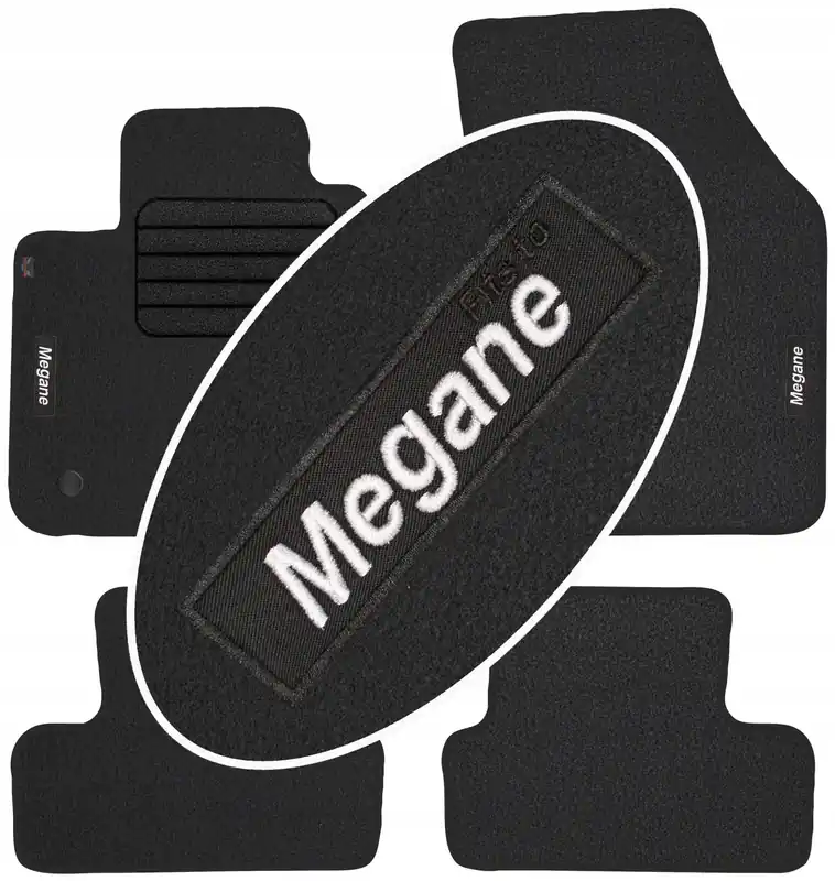 Na przednich dywanikach wykonywany jest napis informacyjny metodą wtopienia gotowej wgrzewki haftowanej o treści ” Megane ” . Dzięki nowoczesnemu zapleczu produkcyjnemu oraz korzystaniem z wysokiej jakości materiałów i nici, haft na dywanikach jest wytrzymały i estetyczny co w dodatkowy sposób wpływa korzystnie na prezentację dywaników we wnętrzu samochodu. Treść napisu na dywanikach jest zgodna ze zdjęciem głównym (w zależności jest to model lub marka samochodu) a nad tym napisem delikatną czcionką naniesiony jest napis „Fits to”, który informuje o przeznaczeniu dywaników.