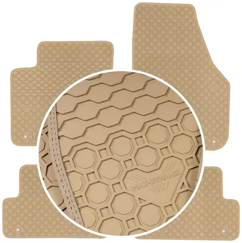 Oferowane dywaniki zostały precyzyjnie zaprojektowane do kształtu płyty podłogowej biorąc pod uwagę nie tylko markę / model samochodu, ale także rocznik oraz w uzasadnionych przypadkach wersję nadwozia. Dywaniki wytwarzane są z najwyższej jakości, trwałej i wzmocnionej mieszanki gumowej niezawierającej substancji szkodliwych dla zdrowia, co zapewnia bezpieczeństwo użytkowania. Estetyczny kołnierz (brzeg) ochronny dookoła dywaników skutecznie zatrzymuje wodę i brud, zabezpieczając oryginalną tapicerkę samochodową przed zabrudzeniem. Dywaniki od spodu posiadają zaprojektowane malutkie kolce, które w dodatkowy sposób chronią je przed przesuwaniem. Dywanik kierowcy został dodatkowo wzmocniony w miejscu najbardziej newralgicznym (miejsce styku pięty z powierzchnią dywanika) tak, aby zabezpieczyć dywanik przed przetarciem.