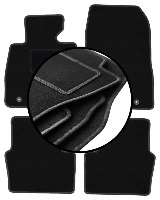 Zdjęcia produktowe: Zdjęcie pokazujące kształt dywaników od góry przedstawia rzeczywisty kształt dywaników, które otrzymasz. Pozostałe zdjęcia prezentują detale wykonania oraz przykładowe mocowania.