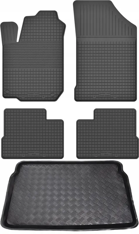 Ten zestaw to połączenie bardzo atrakcyjnej ceny, oraz dużej wytrzymałości produktu. Dywaniki wykonane są gumy, natomiast mata do bagażnika z tworzywa sztucznego LDPE (elastyczny plastik, można zginać i zwijać w rulon)