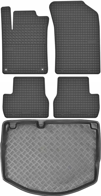 Zestaw stworzony przez firmę MAX-DYWANIK® składający się z dywaników gumowych polskiej firmy MOTOHOBBY wraz z matą do bagażnika wykonaną z tworzywa polskiej firmy MIX-PLAST.