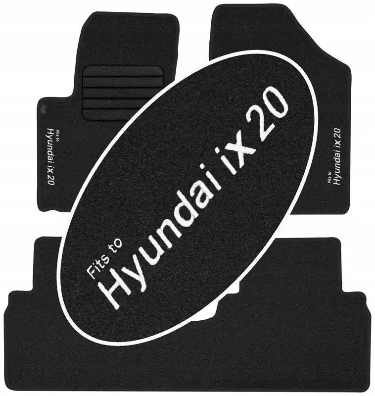 Na przednich dywanikach wykonywany jest napis informacyjny metodą haftowania bezpośredniego na dywanikach o treści ” Hyundai ix20 ” . Dzięki nowoczesnemu zapleczu produkcyjnemu oraz korzystaniem z wysokiej jakości materiałów i nici, haft na dywanikach jest wytrzymały i estetyczny co w dodatkowy sposób wpływa korzystnie na prezentację dywaników we wnętrzu samochodu. Treść napisu na dywanikach jest zgodna ze zdjęciem głównym (w zależności jest to model lub marka samochodu) a nad tym napisem delikatną czcionką naniesiony jest napis „Fits to”, który informuje o przeznaczeniu dywaników.