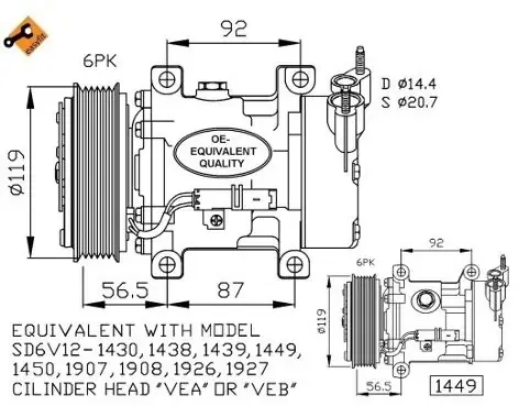 O-RINGS INCLUDED Ilość oleju : 150 Wylot – O [mm]: 15,50 Dolot – O [mm]: 18,30 Napięcie robocze : 12 Pojemność skokowa kompresora :