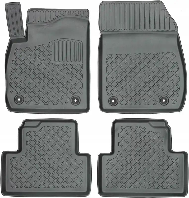 Oferowane dywaniki zostały precyzyjnie zaprojektowane do kształtu płyty podłogowej biorąc pod uwagę nie tylko markę / model samochodu, ale także rocznik oraz wersję nadwozia, dzięki czemu pasują idealnie. Dywaniki wytwarzane są z najwyższej jakości, trwałego i wzmocnionego tworzywa sztucznego, niezawierającego substancji szkodliwych dla zdrowia, co zapewnia bezpieczeństwo użytkowania. Wysoki kołnierz(brzeg) ochronny dookoła dywaników oraz stabilność kształtu skutecznie zatrzymuje wodę i brud, zabezpieczając oryginalną tapicerkę samochodową przed zabrudzeniem. Bezpieczne w użytkowaniu, dzięki praktycznemu i łatwemu w użyciu systemowi mocowania do podłogi samochodu. System mocowania dostosowany jest do marki / modelu samochodu i zabezpiecza dywanik przed przesuwaniem podczas jazdy. Matowe wykończenie oraz dopracowany wzór na powierzchni zapewniają estetyczny wygląd dywaników w samochodzie.