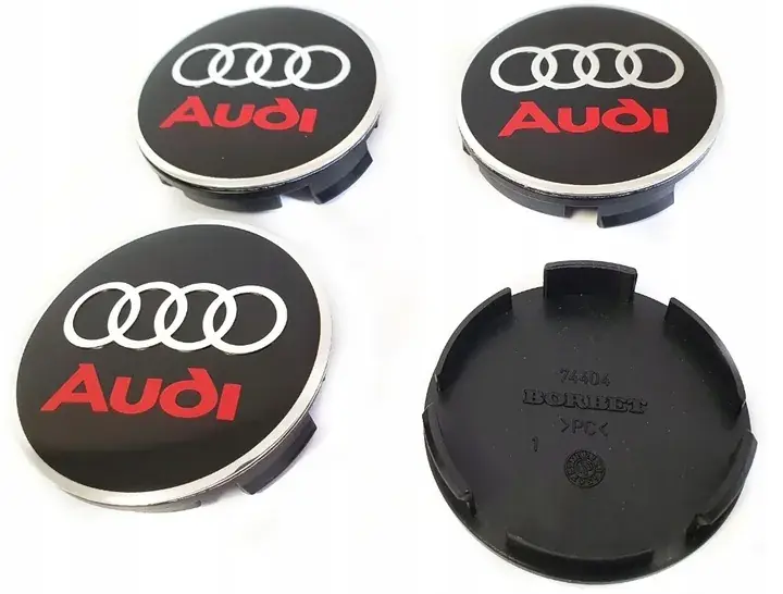 4 dekielki AUDI do felg firmy BORBETKOMPLET DEKIELKÓW AUDI 56mm/52mmLogo srebrne czarne + chrom + napis czerwonyDekielki posiadają naklejoną folię ochronną, którą należy zdjąć.Wymiary podane w milimetrachA – 56,B – 52,5C – 8,D – 6E – 11Dekielki pasują do felg aluminiowych następujących producentów: BORBET,inne proszę dobierać po parametrach z rysunku,tolerancja /- 0,2 mm